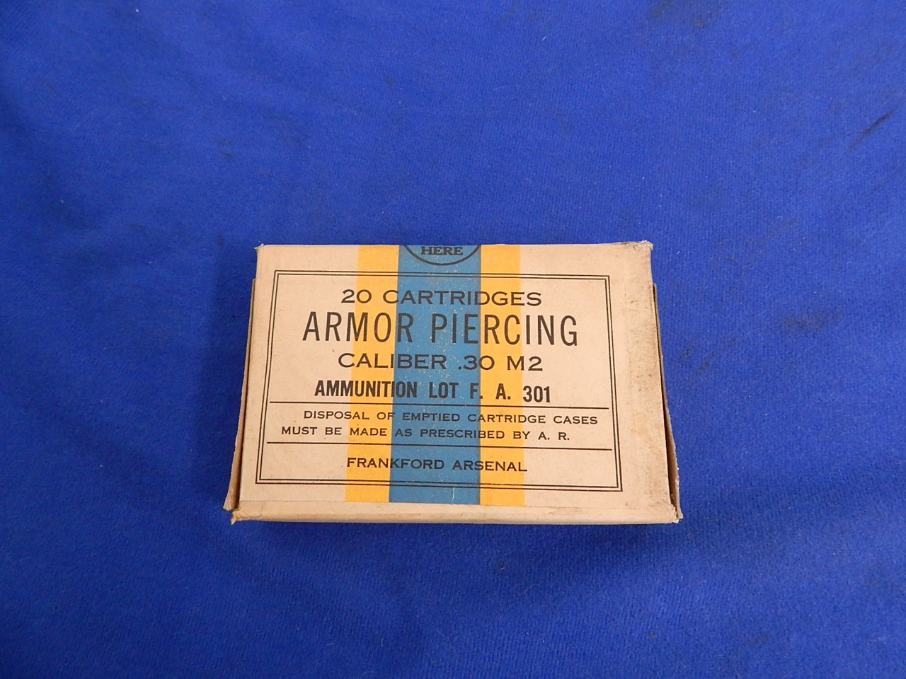 Frankford Arsenal 20 Count unopened box of Armor Piercing 30 Caliber Cartridges. Box remains in very fine condition.