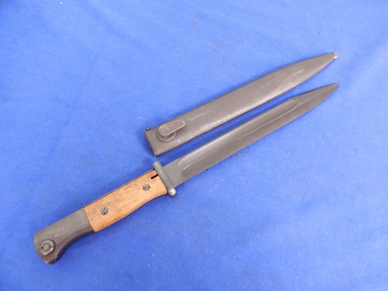 K-98 Bayonet W/S overall 16″ in excellent + condition. Bayonet is totally unmarked.